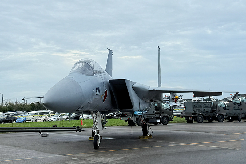 E-767のフライトを楽しんだ後は、岐阜基地からリモートでやってくるF-15とF-2の機動飛行の予定でしたが、こちらは残念ながら天候不良で中止に…。午後のブルーインパルスは飛んでくれるのだろうか…ものすごく不安になってきました。