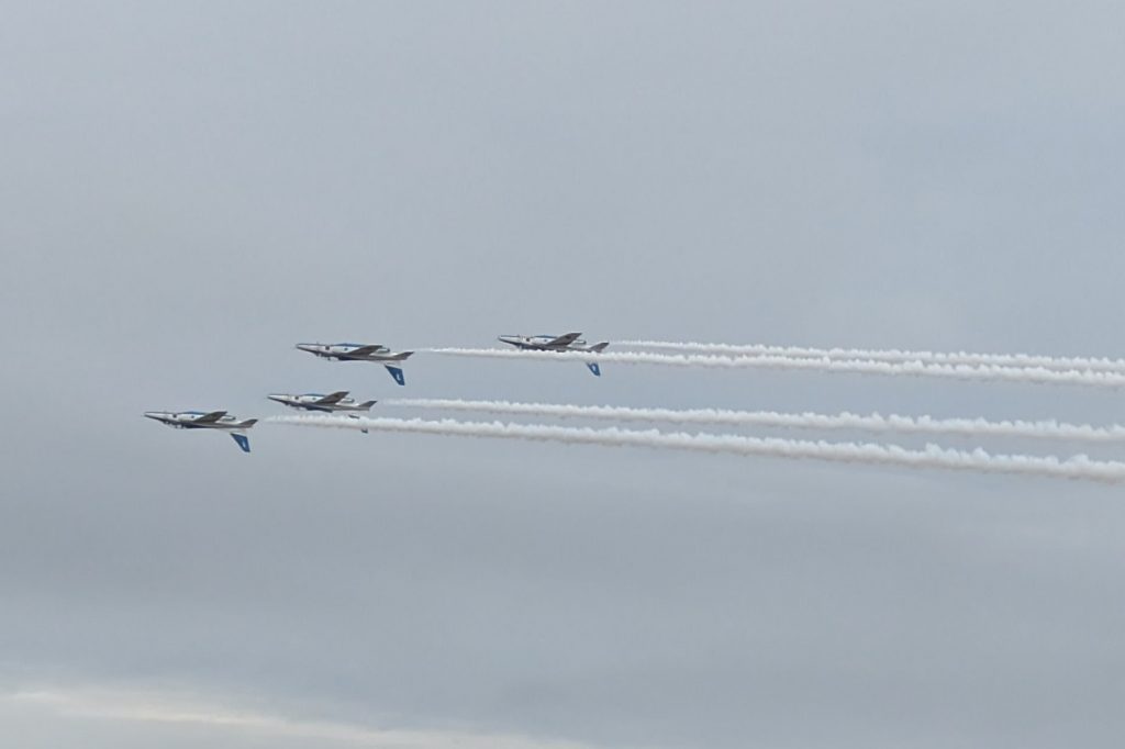 雲があったので高低のアクロバットは見れなかったですが、編隊飛行もアクロバット飛行も披露してくれ、最後にはしっかりと「コークスクリュー」で締めてくれました!雨雲を突き破るような感動の演技に拍手喝采です!