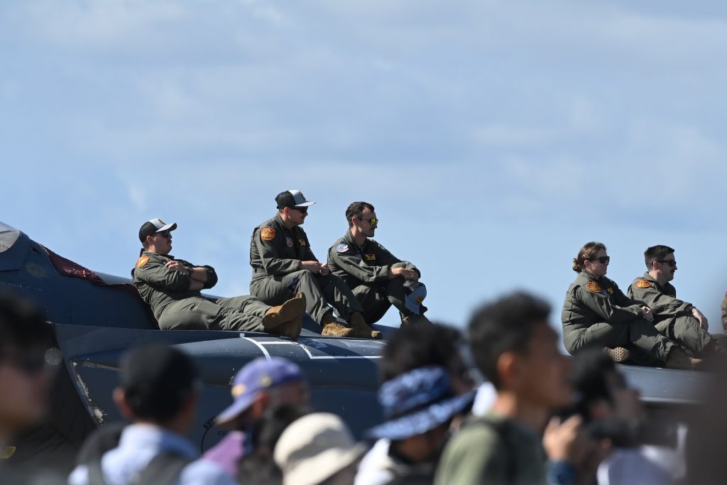 毎回ド迫力の機動飛行を見せてくれていたF-16デモチーム(PACAF)は既に解散しているため、正直あまり期待していなかったのですが、なんと今までどの航空祭でも見たことがないフレア(航空機がミサイル攻撃から身を守るために発射する火炎弾)を何発も放出!!マニアの人からは驚きの喚声の後、フレアの瞬間を逃すまいとひたすらシャッターを切っていました。