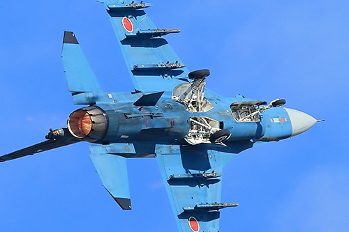 ブルーが終わると半数くらいのお客様が帰路につかれましたが(もったいない!)、トリを飾るのはF-2による「模擬空対地爆撃」!爆撃パスを想定した進入と、低く鋭い旋回。「戦闘機の本分」を感じさせるような内容で、最後まで残って観覧された方は大満足だったと思います。