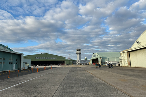 今回はブルーインパルスが飛ぶこともあって、行きの電車からすでに熱気ムンムンの大混雑!築城駅に着いてからも行列でしたが、手荷物検査がとってもスムーズで、なんとオープニングフライトの離陸に間に合いました!(段取りの良さに感謝です!)