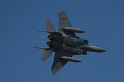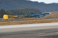ブルーが終わると半数くらいのお客様が帰路につかれましたが(もったいない!)、トリを飾るのはF-2による「模擬空対地爆撃」!爆撃パスを想定した進入と、低く鋭い旋回。「戦闘機の本分」を感じさせるような内容で、最後まで残って観覧された方は大満足だったと思います。
